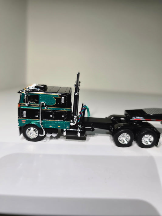Mack Super-Liner with 60" Flat Top Sleeper & Fontaine Renegade LXT40 Lowboy Trailer with Flip Axle Black and Gray 1/64 Diecast Model by DCP/First Gear